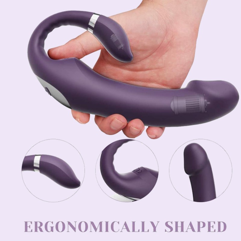 The strapless strap-on dildo vibrator comes with 2 lifelike shaped penis glans and raised veins friction with the vaginal wall,bring you realistic sensual enjoyment.Double heads designed is comfortable to use for two people.Perfect size,Ergonomically designed for portability and widely use.