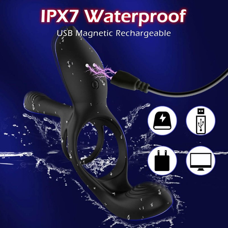 3 in 1 Vibrating Cock Ring with 10 Modes Men's Penis Vibrators, Perineum, G spot, Clitorals Stimulator