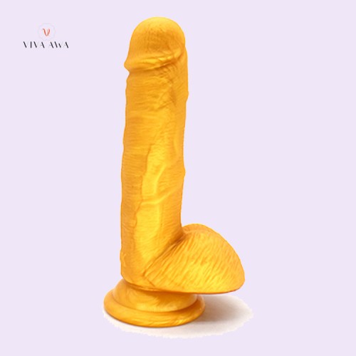 6.9" Golden Dildo With Suction Cup Artificial Penis. Ultra premium, realistic dong with balls and suction cup base. Crafted from incredibly lifelike BioSkin. Sensuously veined shaft looks real, feels better. Hefty, sculpted balls add weight for a super realistic ride. Handmade and hand finished with incredible detail. Use with your favorite water based lubricant.
