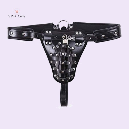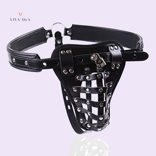 High quality leather made high quality leather chastity pants with key and locks. Cock cage design and further lock make you being loyal to your lover.