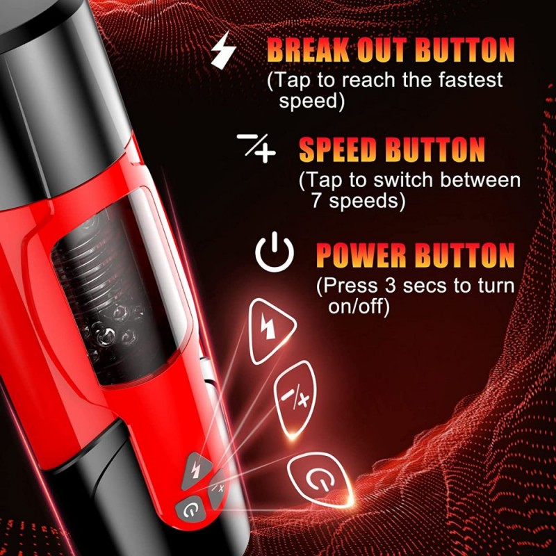 【ONE-CLICK ORGASM】One-Click Orgasm button is located at the lower part of the cup,right near the on/off button, this offers incredible vibrating and pulsating functions and creates an unforgettable experience you will be able to repeat whenever you desire.